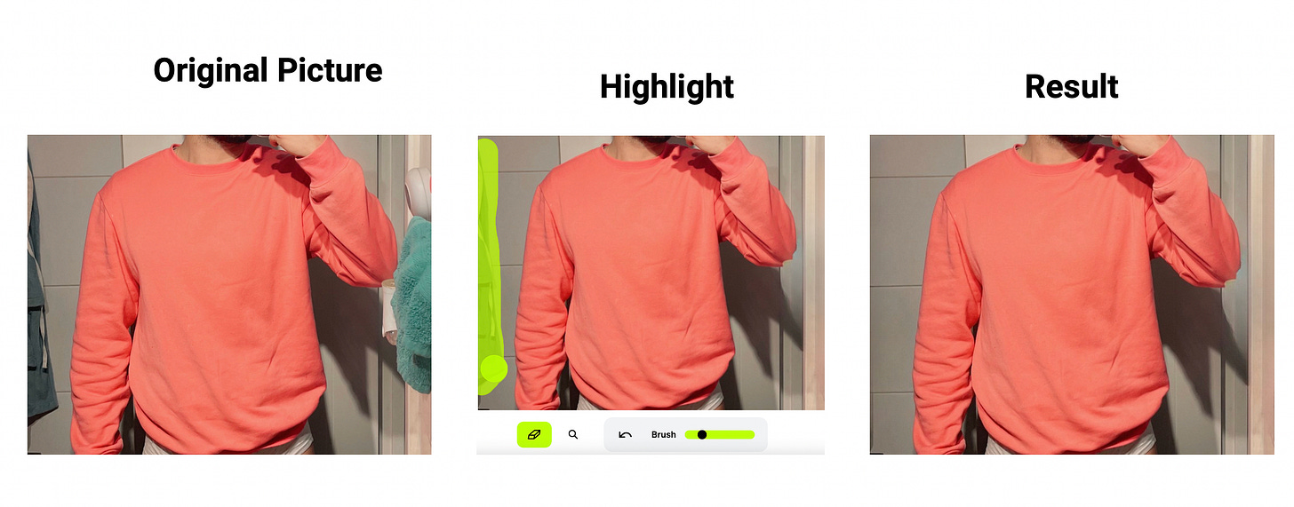 Cleanup is an online tool where you can upload your picture and highlight the objects you want to remove, and it will try its best to conserve the original state of the photograph and take that annoying object from the picture. It is also good if you work in marketing or have a small business where you want to show a product on your Instagram account. Here I leave you an example: